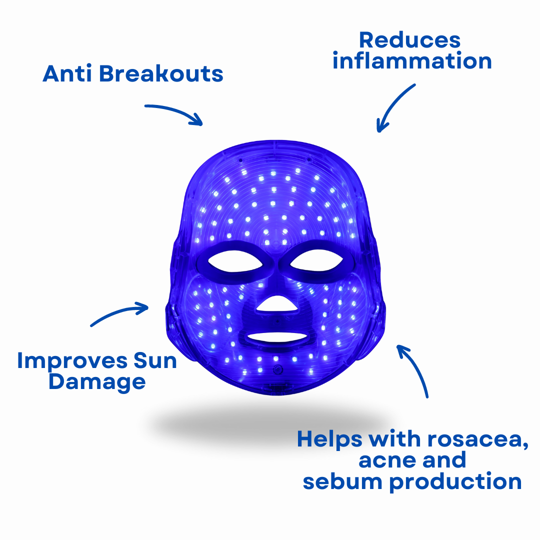 - Blue Light: Destroys acne-causing bacteria, regulates natural oil production, and improves skin clarity.