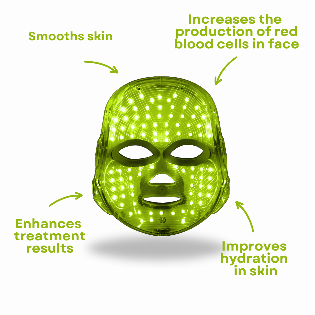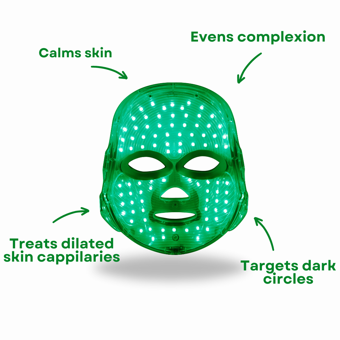 - Green Light: Calms and soothes irritated skin, lightens hyperpigmentation, and evens skin tone.