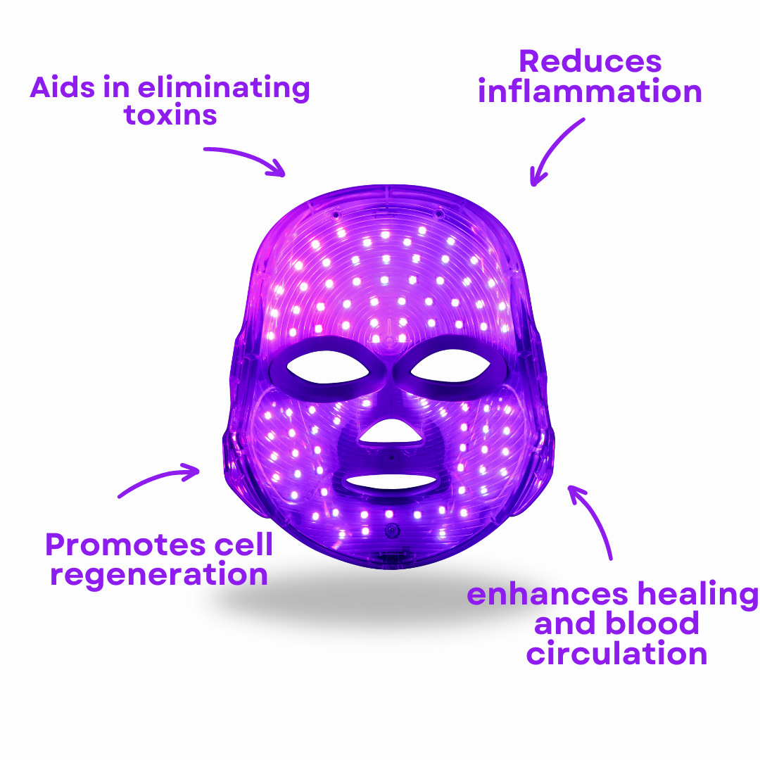 - Purple Light: Promotes a brighter glow, revitalizes uneven skin tone, and improves lymph microcirculation.